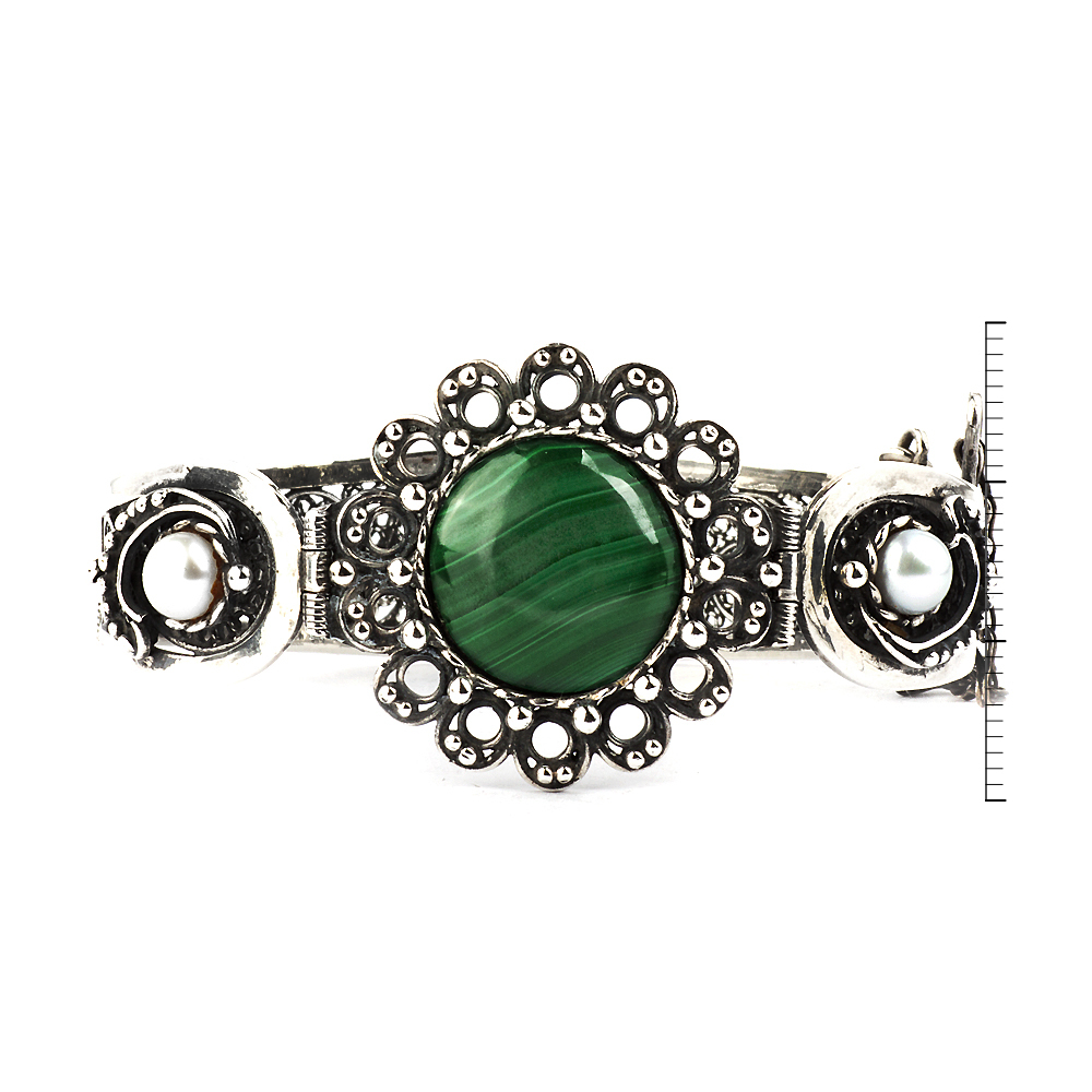 Браслет из серебра с малахитом и жемчугом