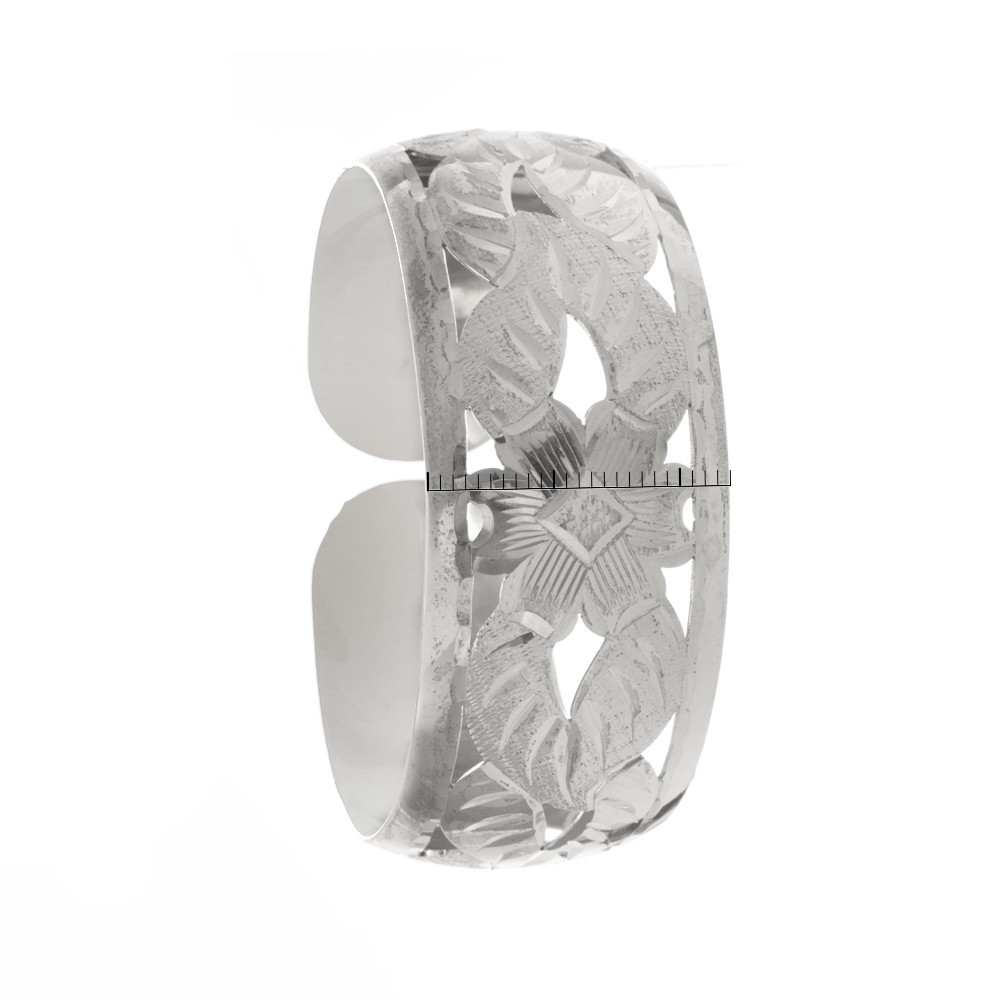 Браслет серебряный жесткий с цветочным узором Кубачи