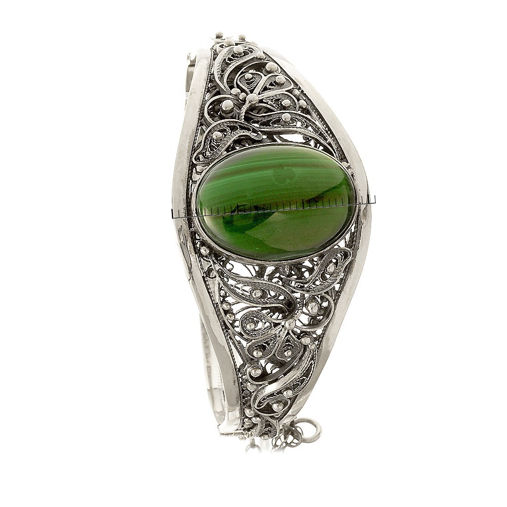Браслет серебряный ручной работы Кубачи с малахитом