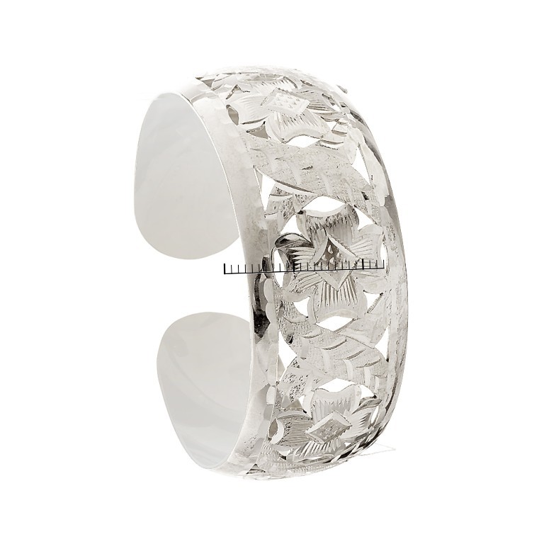 Серебряный браслет ручной работы, выполненный в технике выпиливания и гравировки.