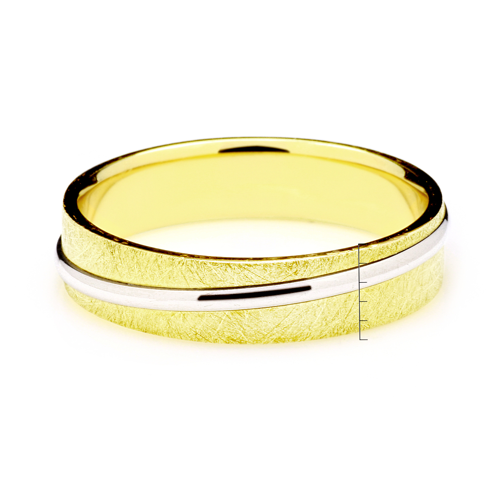 Обручальное кольцо из желтого и белого золота шириной 5 мм.